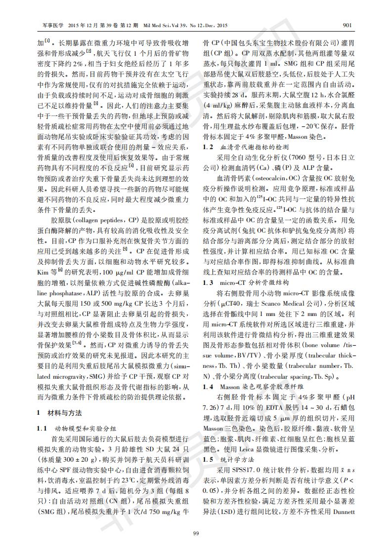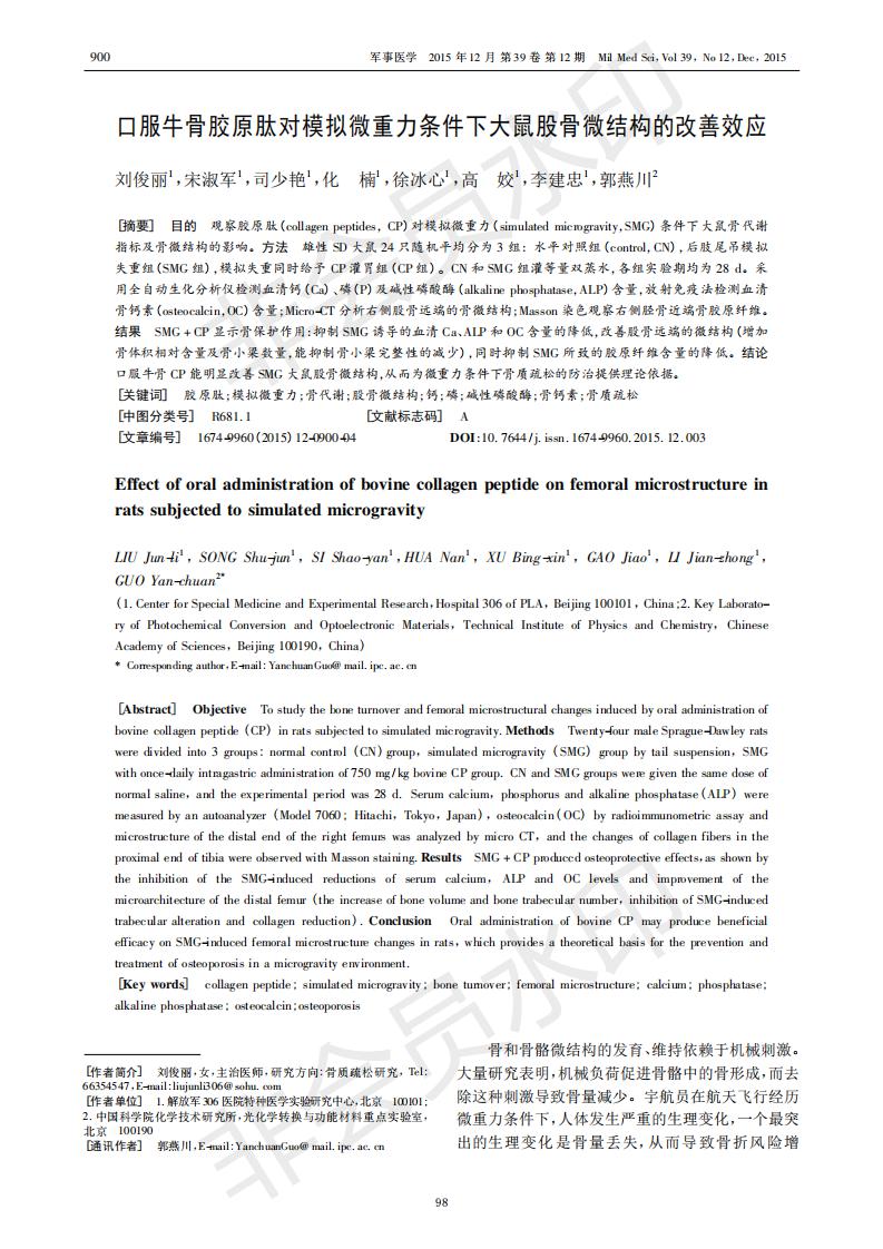Improvement effect of oral bovine collagen peptide on the microstructure of rat femur under simulate