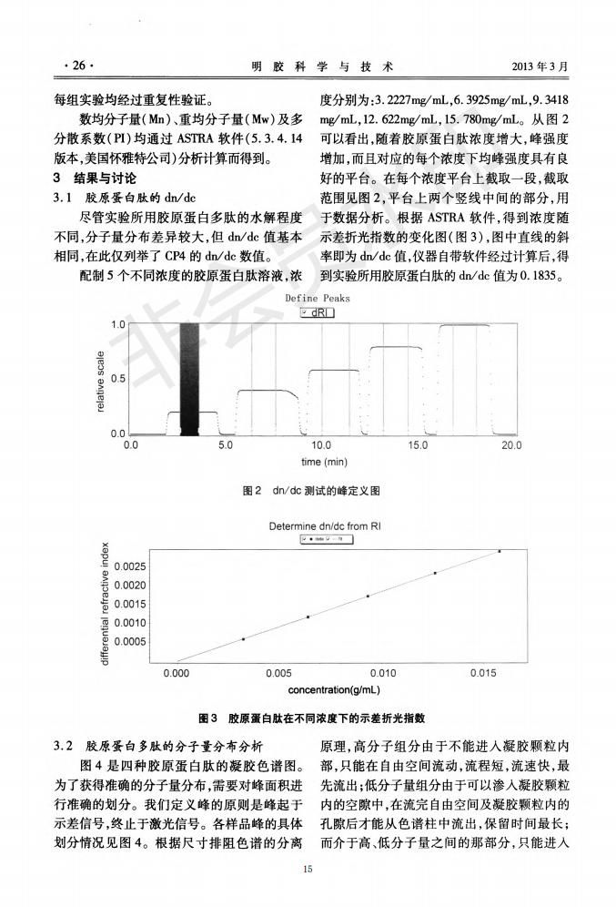 采用色譜柱和激光光散射聯用的方法表征膠原蛋白肽的分子量