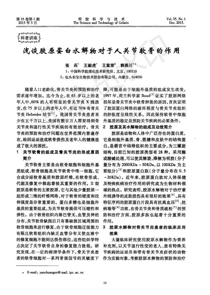 淺談膠原蛋白水解物對(duì)于人關(guān)節(jié)軟骨的作用