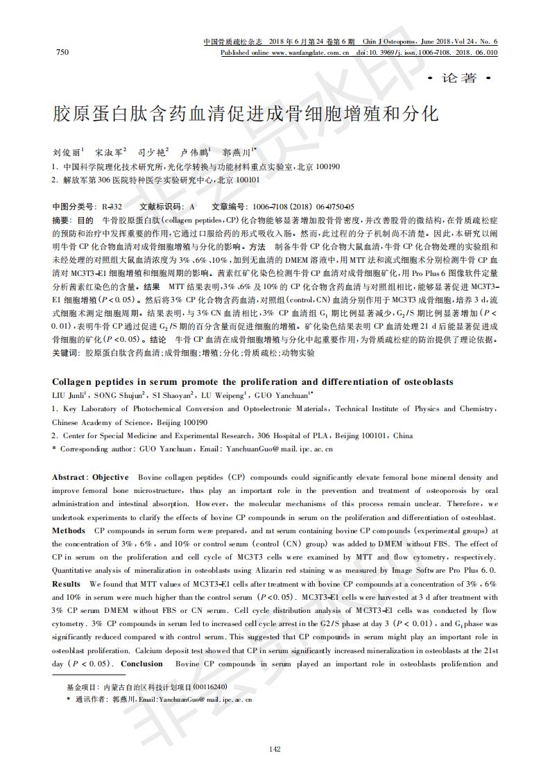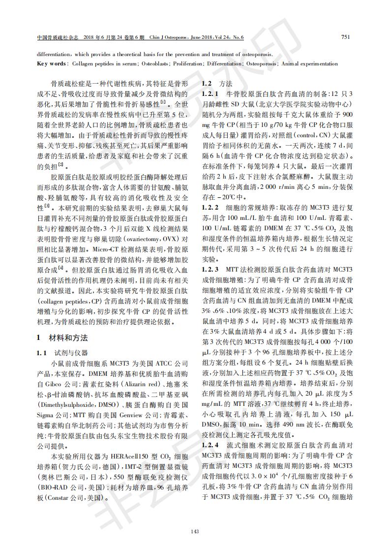Collagen peptide-containing serum promotes the proliferation and differentiation of osteoblasts
