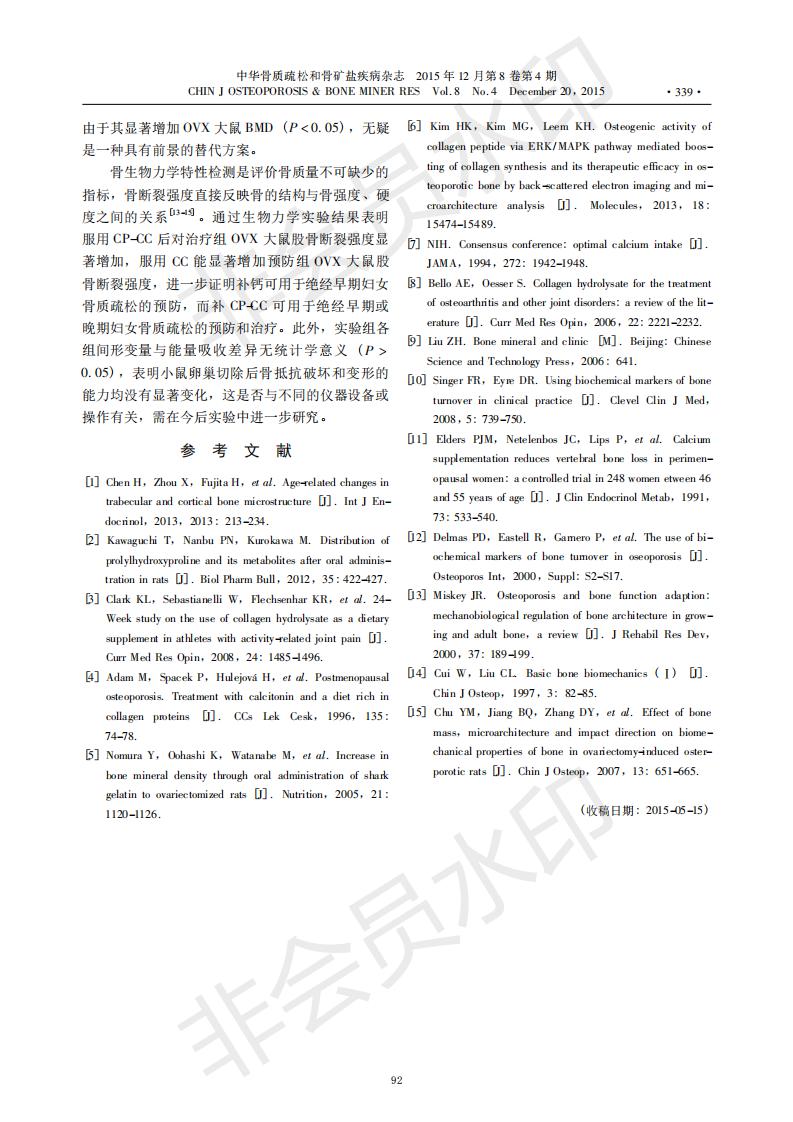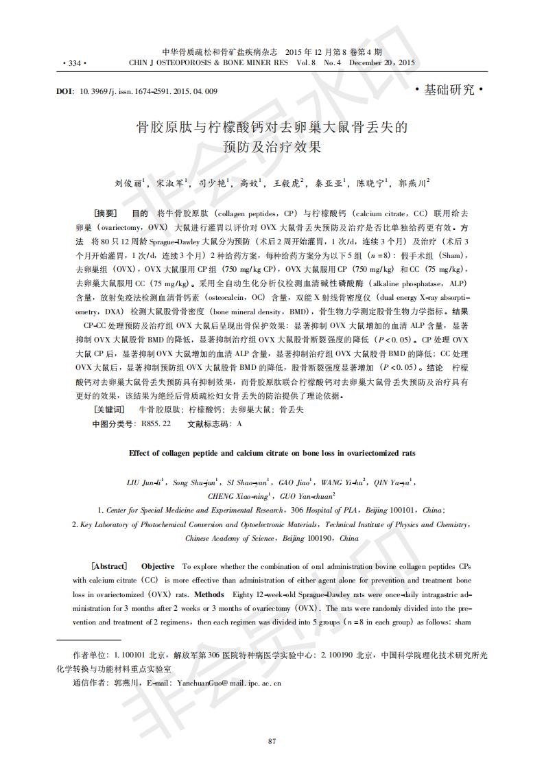 骨膠原肽與檸檬酸鈣對去卵巢大鼠骨丟失的預防及治療效果