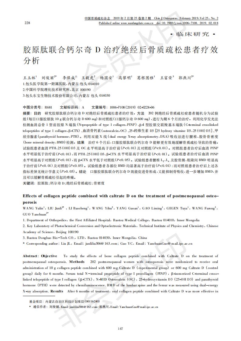 膠原肽聯(lián)合鈣爾奇D治療絕經(jīng)后骨質(zhì)疏松患者療效分析