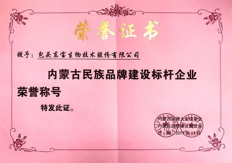 大會發布了2019年度“內蒙古品牌價值評價信息數據”和“內蒙古百強品牌價值評價報告”,同時,大會還向獲得“2019年內蒙古百強品牌”系列推選活動的企業代表頒發獎牌。公司分別榮獲《內蒙古百強品牌》和《內蒙古民族品牌標桿企業》榮譽稱號。東寶/圓素品牌價值突破9.77億元。