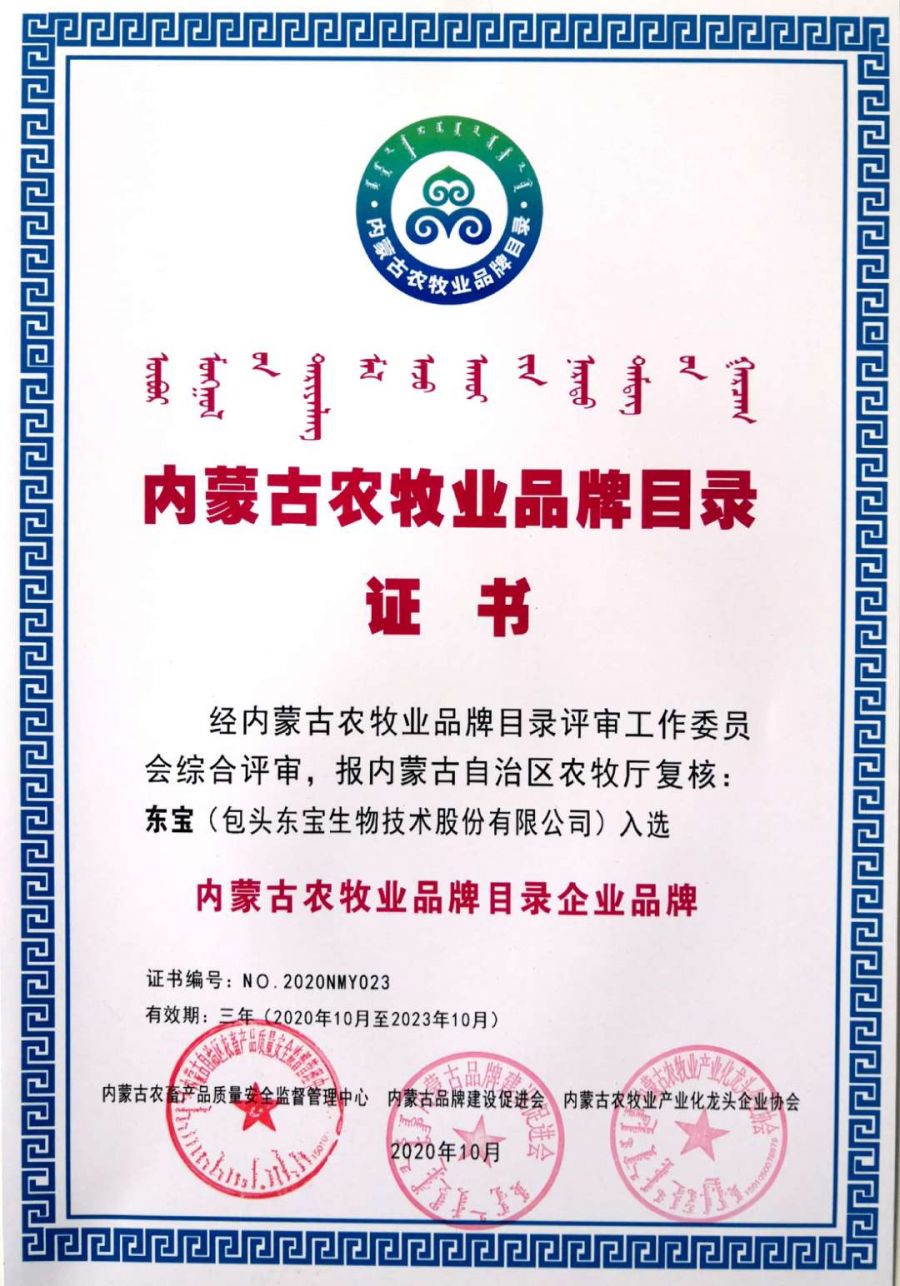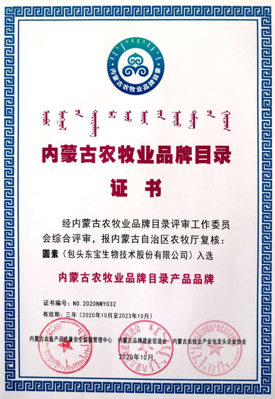 近日,內(nèi)蒙古農(nóng)牧業(yè)品牌目錄發(fā)布會(huì)在內(nèi)蒙古國(guó)際會(huì)展中心成功舉行,自治區(qū)農(nóng)牧廳和有關(guān)部門領(lǐng)導(dǎo)、組織實(shí)施單位負(fù)責(zé)人及品牌目錄企業(yè)代表近100人參加了發(fā)布會(huì)。現(xiàn)場(chǎng)發(fā)布了內(nèi)蒙古農(nóng)牧業(yè)品牌目錄名單,東寶生物的“東寶”和“圓素”成功入選,作為內(nèi)蒙古農(nóng)牧業(yè)品牌代表并頒發(fā)了證書。